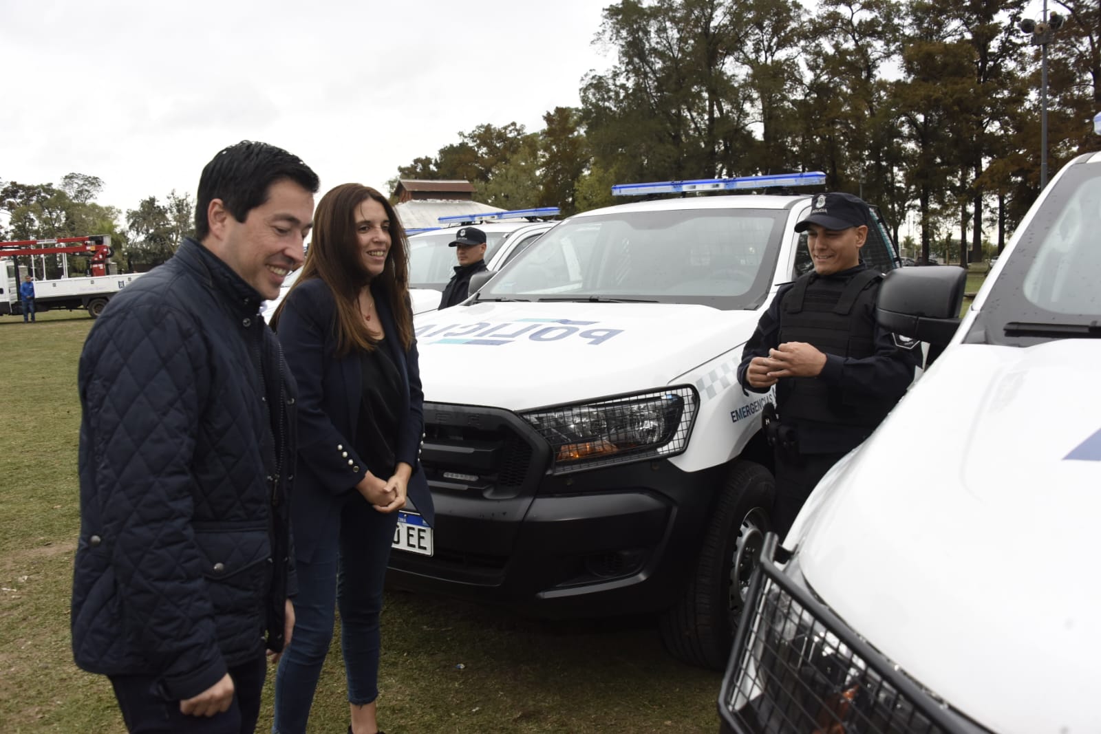 Noe Correa, Leo Nardini, Luis Vivona y la Lic. María Luján Salgado, hicieron entrega de los nuevos móviles que se suman al patrullaje en los barrios de la comuna. Esto también significa más efectivos de la Policía bonaerense, para fortalecer las fuerzas de seguridad en las calles.