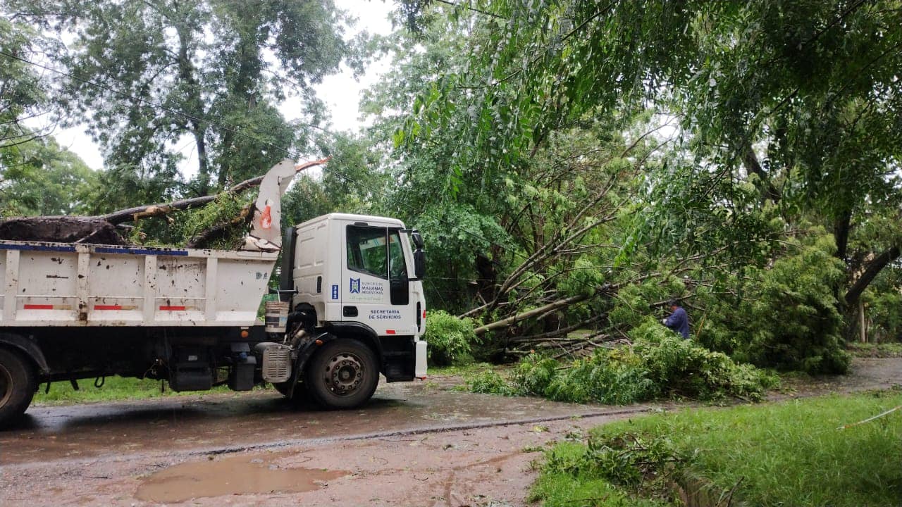 Distintas áreas siguen abocadas a las contingencias que produjo la fuerte tormenta. Se remueve la caída de postes, cables, árboles, ramas que provocaron, entre otras cosas, cortes de energía. más de 100 familias ya recibieron asistencia.