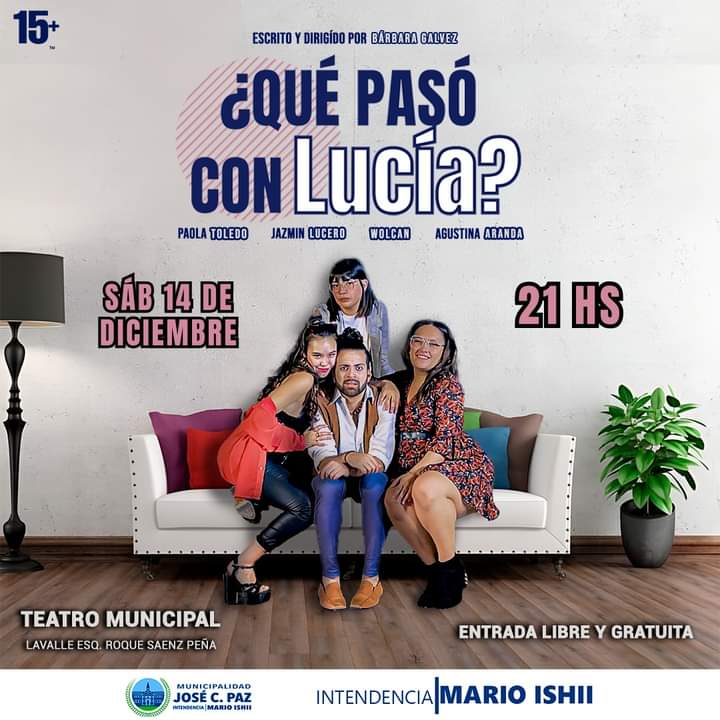 El Sábado 14/12 a las 21 Hs en las instalaciones del Teatro Municipal el elenco de teatro nos trae una vez más la obra”¿QUÉ PASÓ CON LUCÍA?”